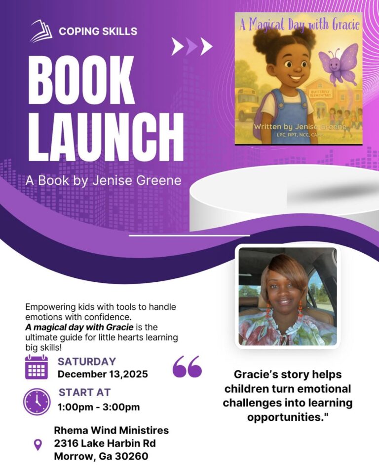 ATLANTA, GA, December 10, 2025 – PRLog – Children across the country are heading into new classrooms, meeting new friends, and trying new things – and with those moments often come butterflies in the tummy. In her beautifully crafted debut children’s book, A Magical Day with Gracie, Licensed Professional Counselor Jenise Greene delivers a gentle, encouraging story that helps young readers understand that feeling nervous is completely normal – and that even the bravest hearts get butterflies sometimes.